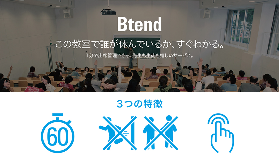 授業中はBeaconで入室中か確認し、途中退出した者がいれば先生側に通知します。学籍番号とスマートフォンの個別の識別番号を1台限定で紐付けて代返に対策します。